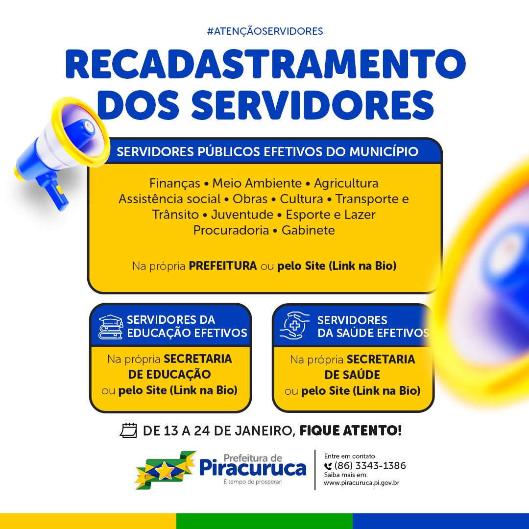 Está aberto o Recadastramento dos Servidores Públicos Efetivos de Piracuruca !